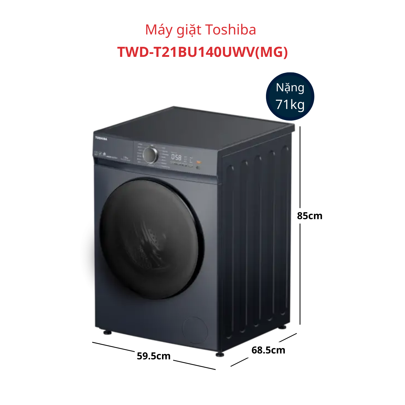 Bảng thông số kỹ thuật của máy giặt sấy Toshiba TWD-T21BU140UWV (MG) model 2025
