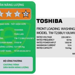 Bảng thông số kỹ thuật Toshiba Inverter TW-T23BU110UWV(MG) 10kg
