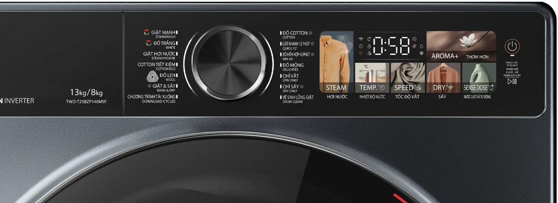 | Giặt 13kg sấy 8kg / Trên 7 người | |