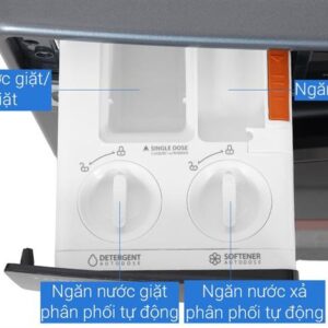 Sau chu trình giặt, máy có khả năng sấy khô quần áo giúp người dùng tiết kiệm đáng kể thời gian phơi phóng, nhất là trong những ngày mưa ẩm hoặc không gian sinh hoạt hạn chế. Quần áo sau sấy mềm mại, ít nhăn và sẵn sàng sử dụng.