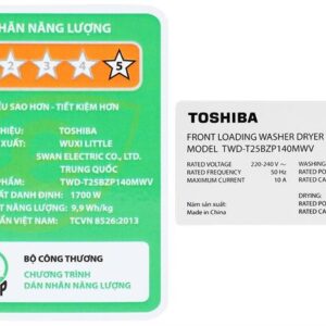 Bảng thông số kỹ thuật máy giặt sấy cửa trước Toshiba Inverter TWD-T25BZP140MWV(MG)