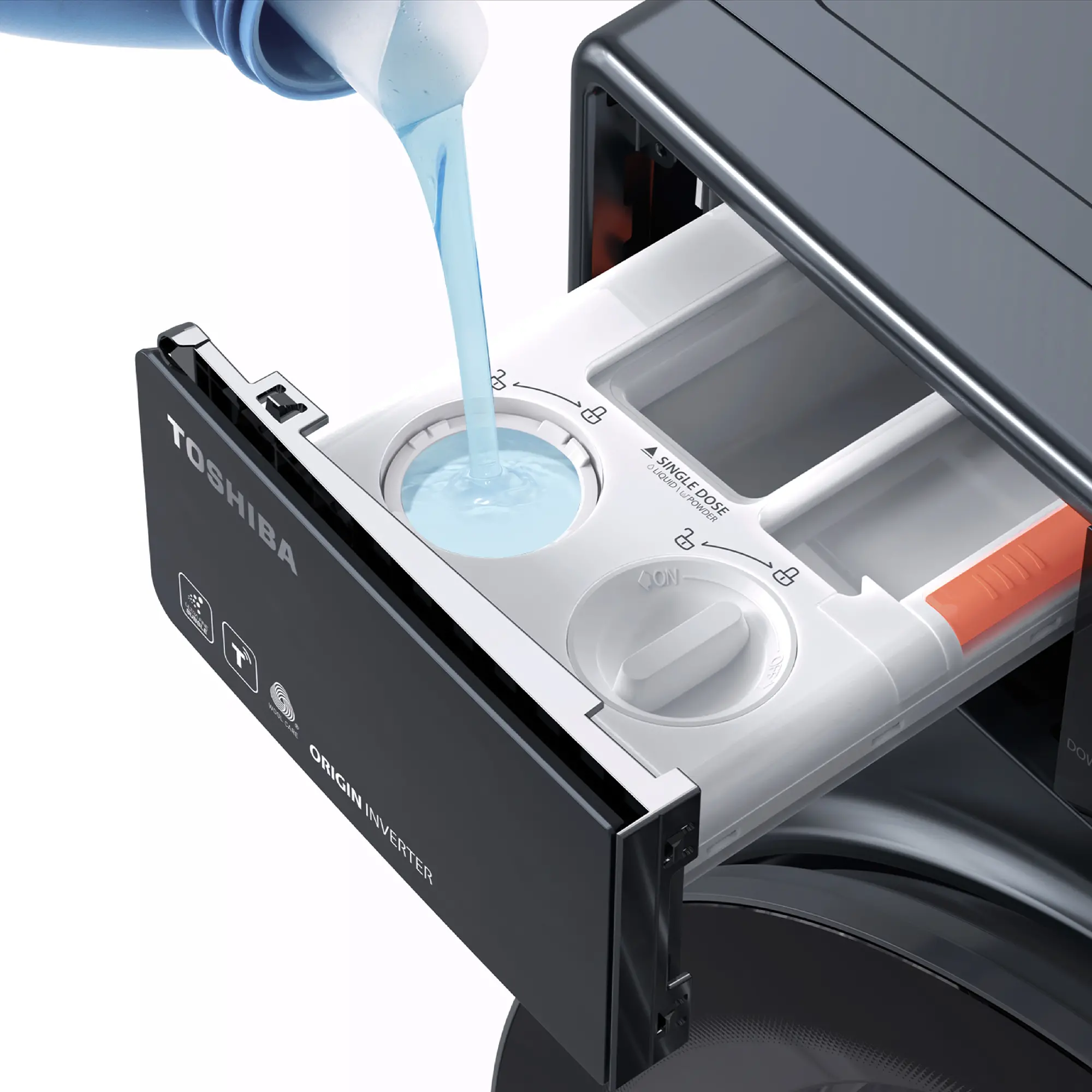 Toshiba trang bị cho model này nhiều công nghệ giặt hỗ trợ làm sạch sâu nhưng vẫn giữ được độ bền và màu sắc quần áo. Công nghệ Origin Color giúp hạn chế phai màu, giữ quần áo luôn tươi mới sau nhiều lần giặt. Bên cạnh đó, SenseDose tự động tính toán và cấp lượng nước giặt – xả phù hợp với khối lượng đồ, vừa giặt sạch vừa tránh lãng phí.