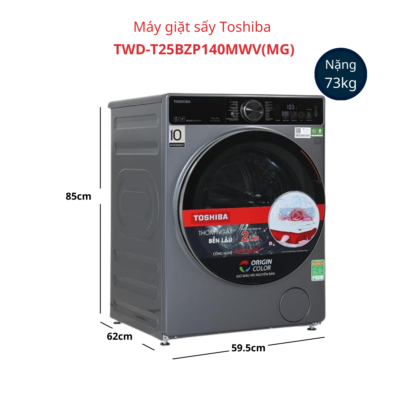 | Kích thước – Khối lượng | Cao 85 cm – Ngang 62 cm – Sâu 59.5 cm – Nặng 73 kg |
